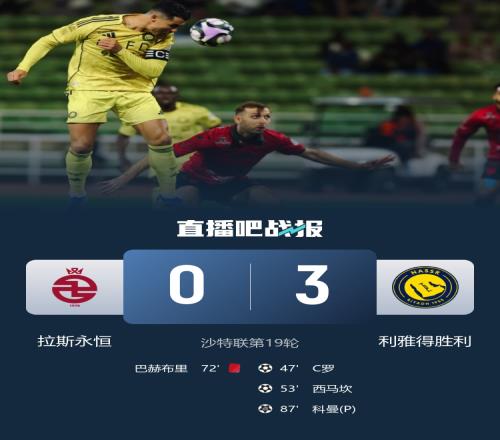 利雅得胜利在客场以3-0击败拉斯永恒,积43分排名重回第2位。C罗打进生涯第961球,菲利克斯助攻双响。